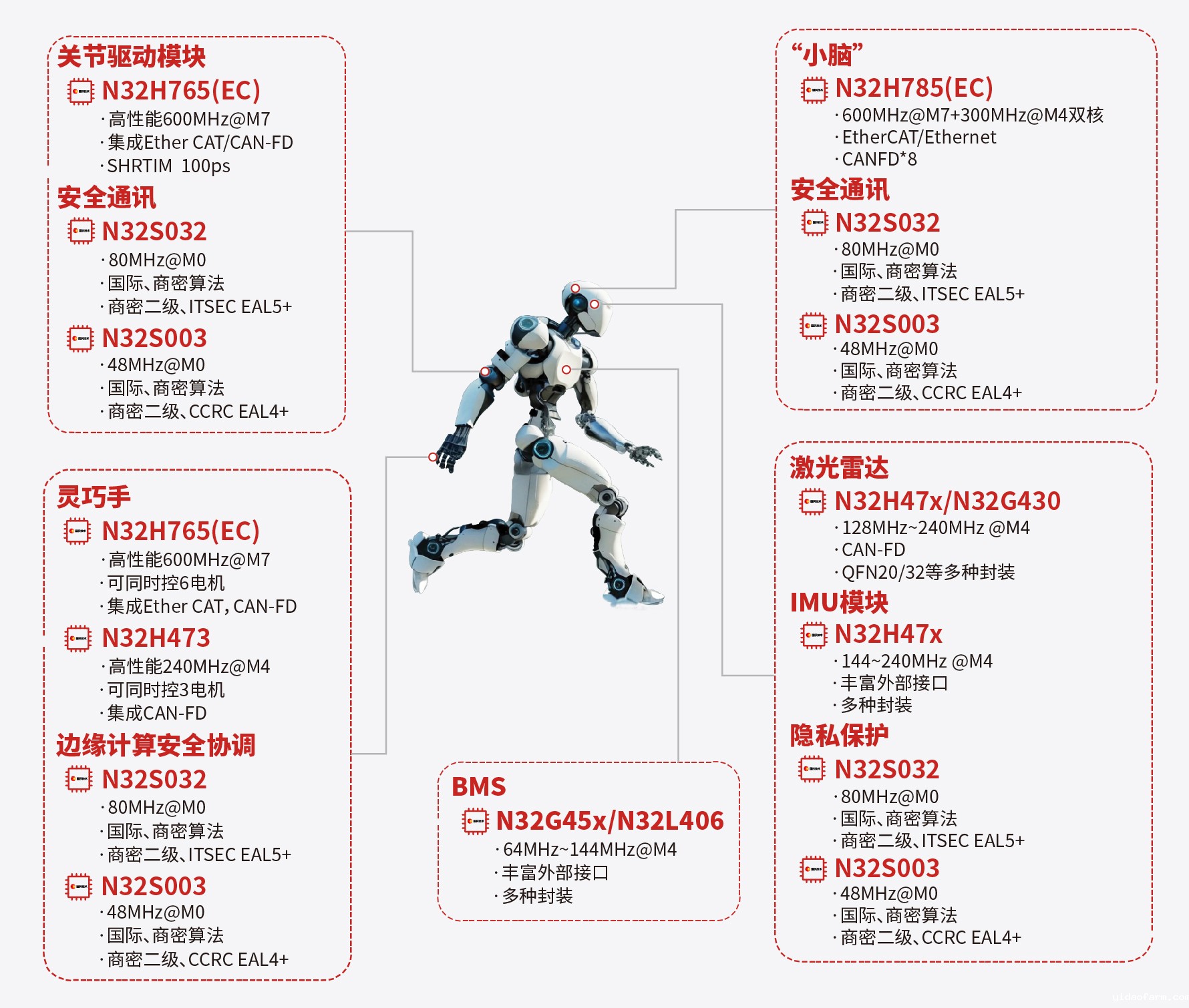 • 安全通讯/边缘计算安全协调/隐私保护:N32S032/N32S003
