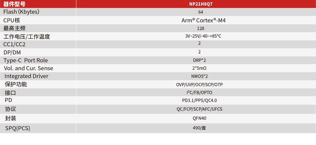 NP21是一款高集成度的USB Type-C PD 或Type-A双口快充协议芯片,内置高性能处理器和大容量可编程Flash存储器。双口逻辑独立,支持独立环路架构,双路功率可独立控制。芯片内部集成了CC/CV 控制环路、双边泄放电路以及多种系统保护功能。芯片采用高度集成的设计,外部元器件少,为适配器、车载充电器等提供高集成、低成本的完整解决方案。