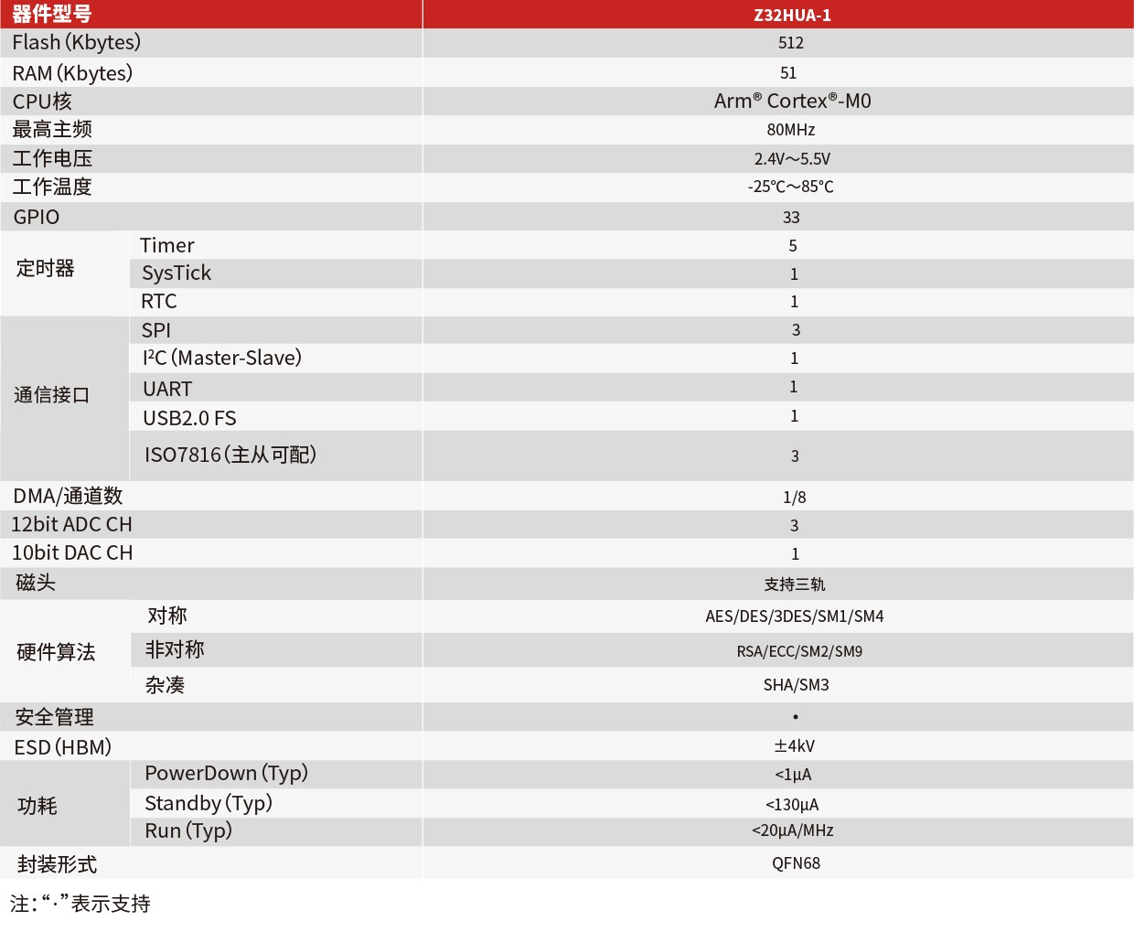 Z32HUA-1系列安全芯片采用32位高性能Arm® Cortex®-M0安全核,采用AMBA多总线结构实现。片上集成了4KB高速Cache、48KB SRAM、3KB PAERAM和512KB Flash。芯片内置的硬件算法协处理器提供性能优异的DES/3DES、RSA、ECC、SM2、SM1/SM3/SM4、SHA-1/SHA-256/SHA-512安全算法和真随机数发生器。芯片自带AD/DA转换模块,拥有USB2.0 FS、SPI、7816、I2C、UART、有线/无线音频接口、磁条读接口等各种通信接口。芯片通过EAL4+安全认证。