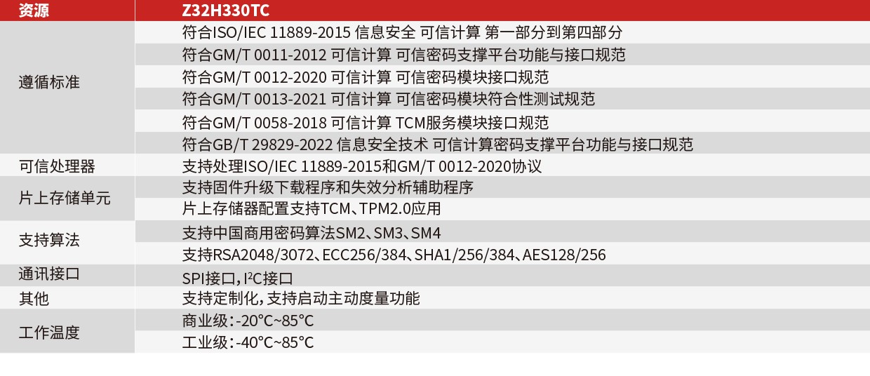 Z32H330TC是国际可信计算产业中首个加载中国密码算法和国际密码算法的双算法可信计算核心产品,完整支持微软Windows可信应用,与Intel平台可信启动无缝配合。支持Intel、AMD、高通等多个国际/国内主流计算平台应用,支持高速SPI接口,提供硬件隔离的安全密码算法服务、平台完整性保护、平台远程身份证明等功能。该芯片广泛应用于各类服务器、计算机、平板电脑、智能手机、嵌入式系统、IoT设备等终端设备。芯片通过EAL4+安全认证。